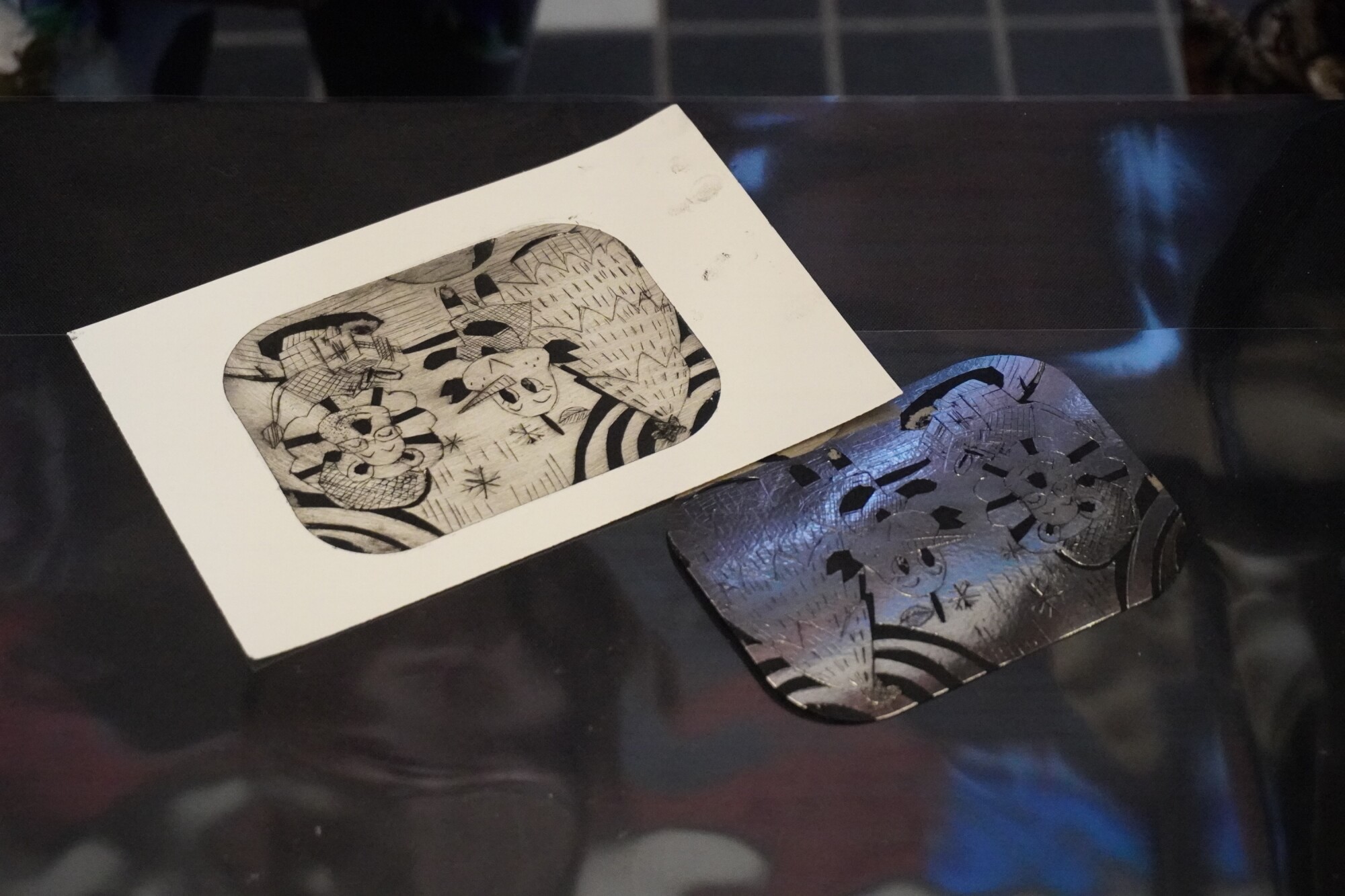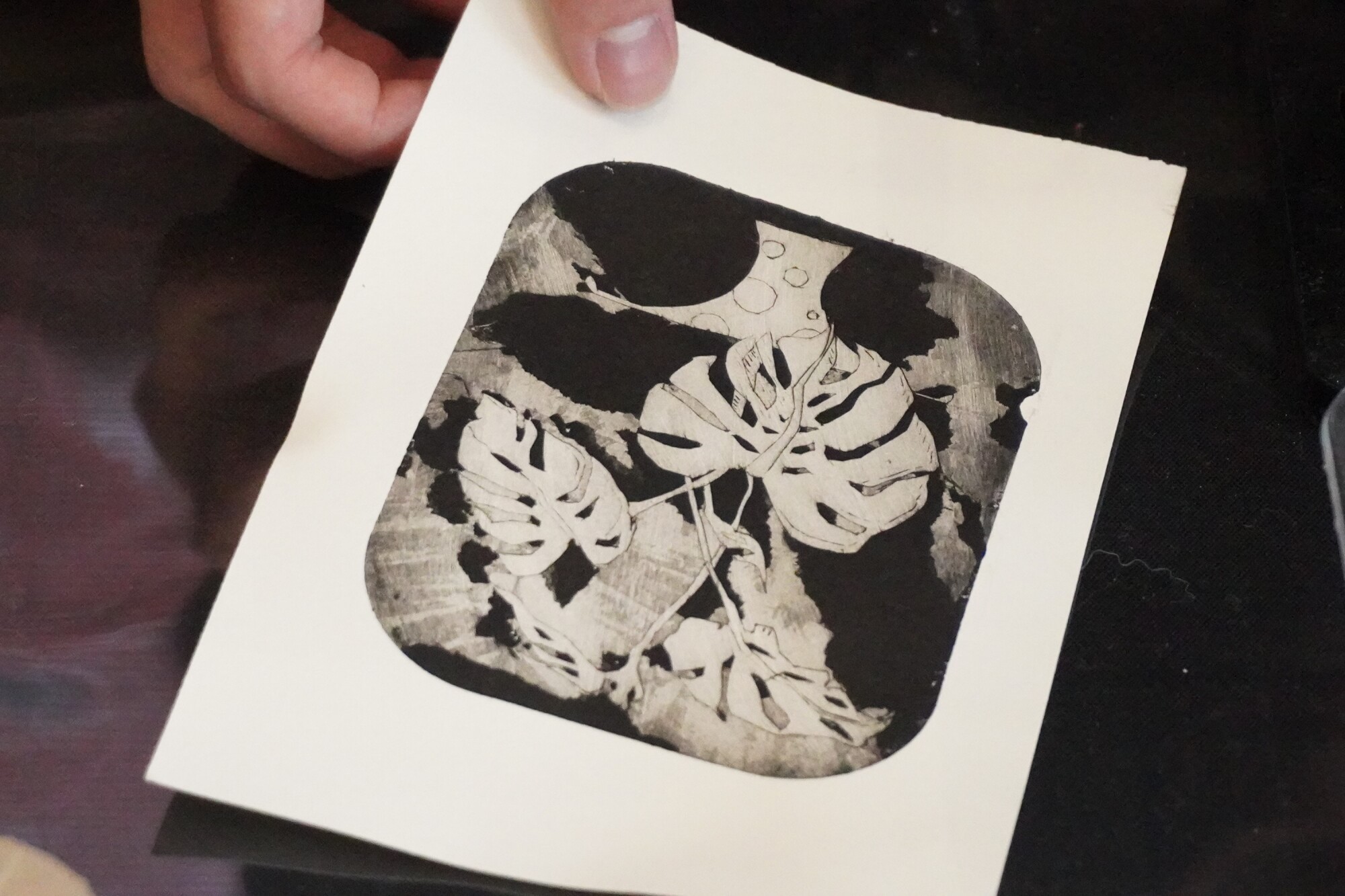 Milk Carton Printmaking draws inspiration from the inner foil layer of recycled milk cartons. Marks and prints can be made directly on the foil surface. This technique transforms everyday materials into printmaking medium, is easy to operate, and serves as an ideal introduction for beginners, offering a very direct way to understand the transformation from material to image in printmaking.