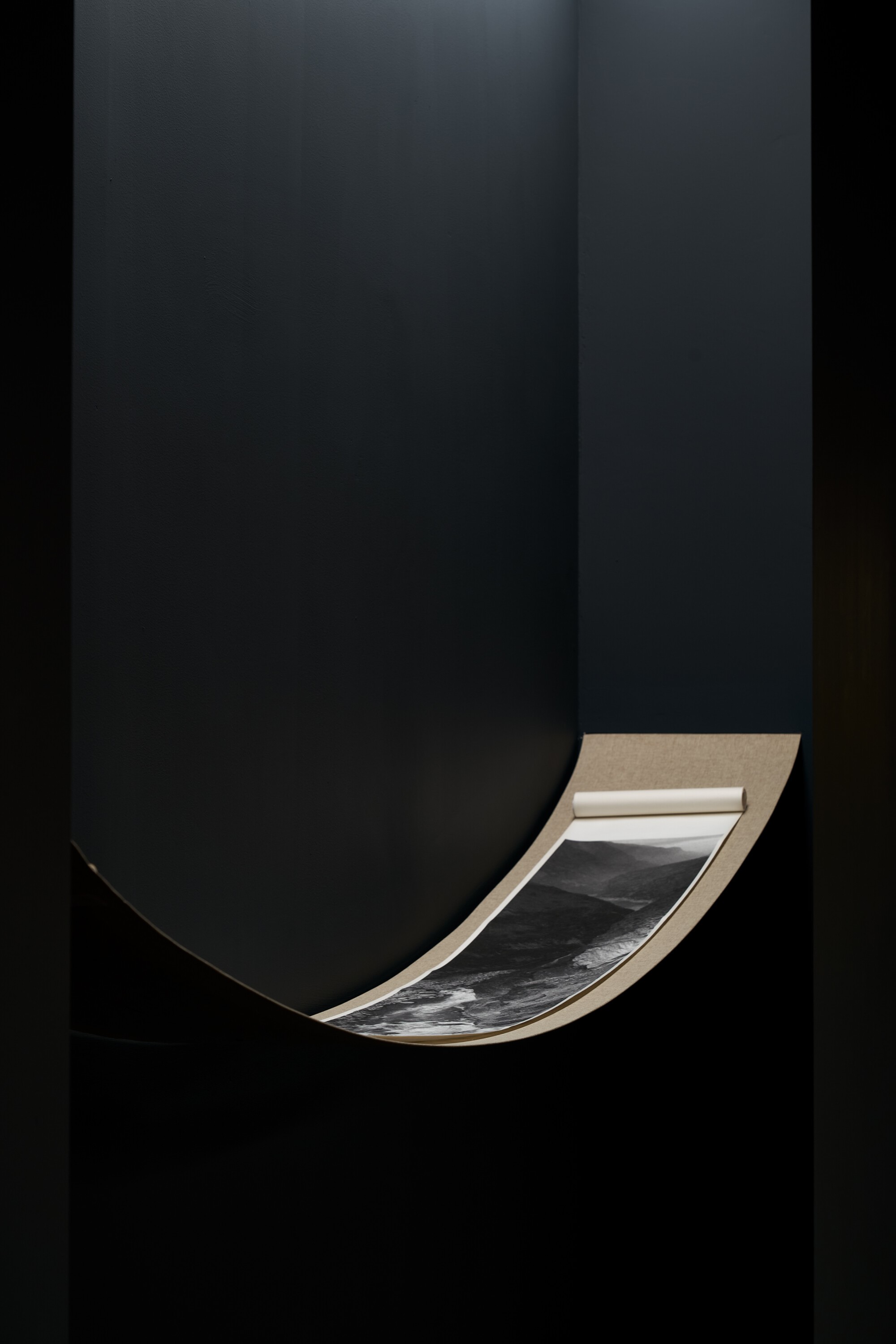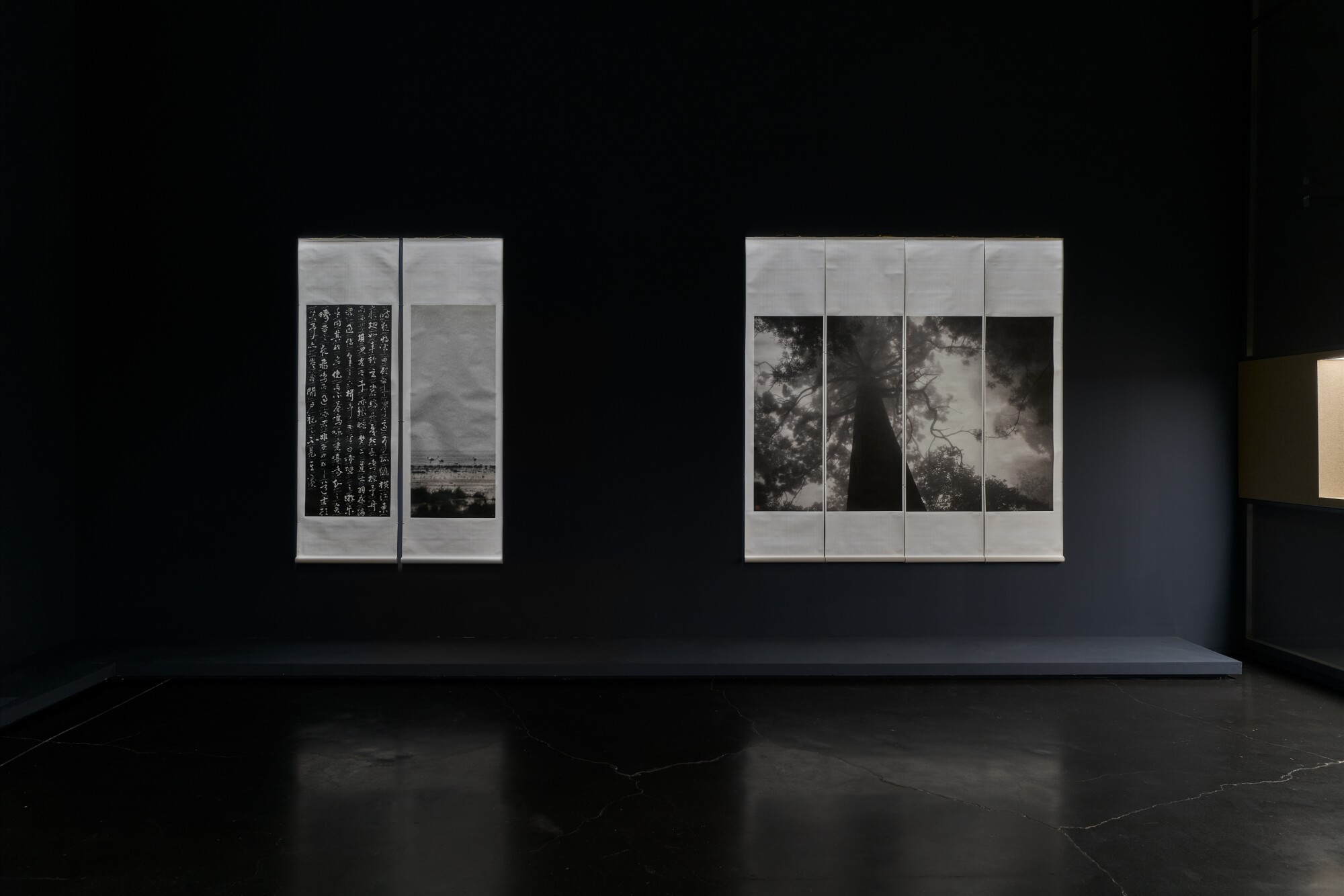 本次展览在展陈设计中引入半透明的灰色网纱作为主要空间元素,使作品在层层递进、若隐若现中徐徐展开。网纱柔软而通透的特性,与秋麦摄影作品的材质属性,以及中国传统绘画中常见的纸、绢等软性媒介形成呼应。展览空间结构则借鉴中国园林的“移步换景”,通过曲折的行进路径与错落的展墙关系,延缓和延展观看节奏和视角,在空间层面回应了秋麦作品所倡导的观看方式。