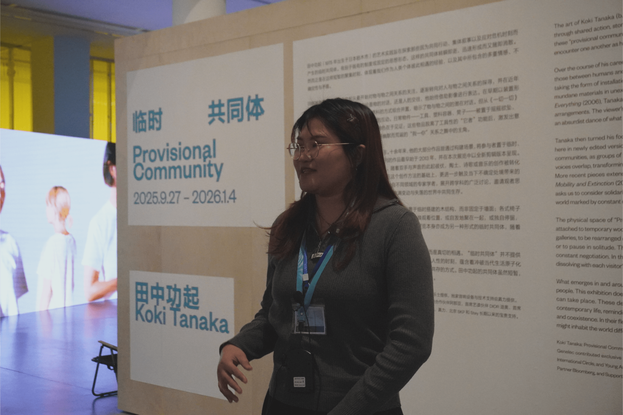 常园青老师的研究长期聚焦人口老龄化背景下的年龄态度、代际关系与老年时期的社会适应,议题包括人们如何感知衰老、如何积极适应老年生活,以及如何促成更和谐的代际共处。艺术家田中功起通过“临时共同体”构建的微型社会实验,生动模拟了现实生活中照护与代际互动所面临的挑战——无论是有限资源的协商,还是弥合认知与身体差异的互助。在此次特邀导览中,常老师将结合这些研究,与观众共同探讨艺术家的创作所揭示的心理与社会因素如何在跨代的集体协作中发挥作用,进而启发大家思考:在一个不可逆转地“老去”的社会中,我们应如何通过练习与实践,更和谐地走向“共老”。