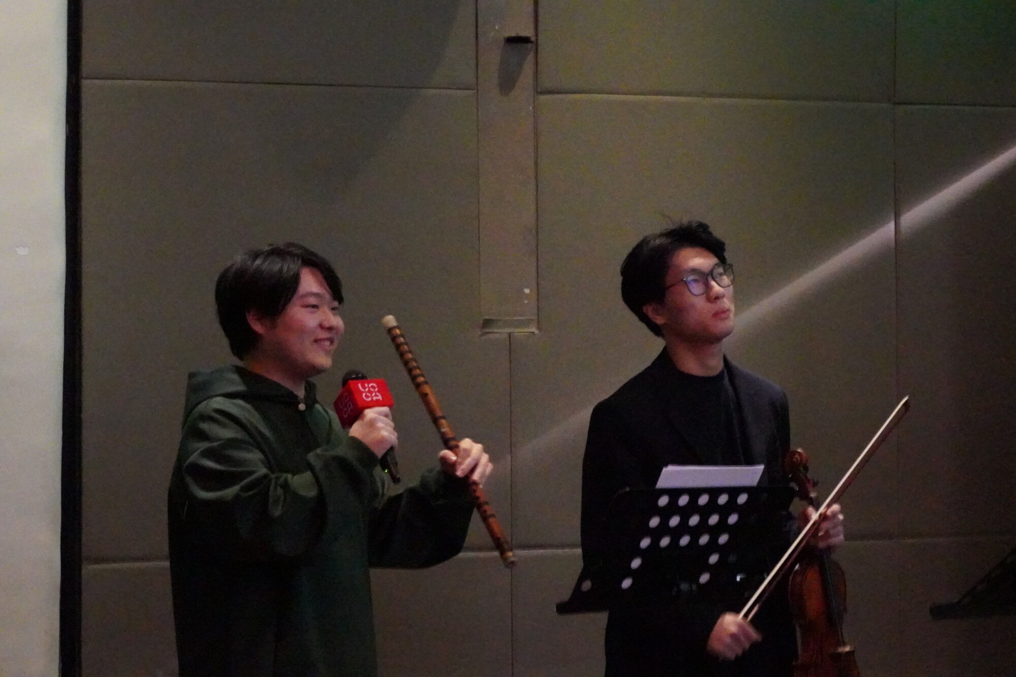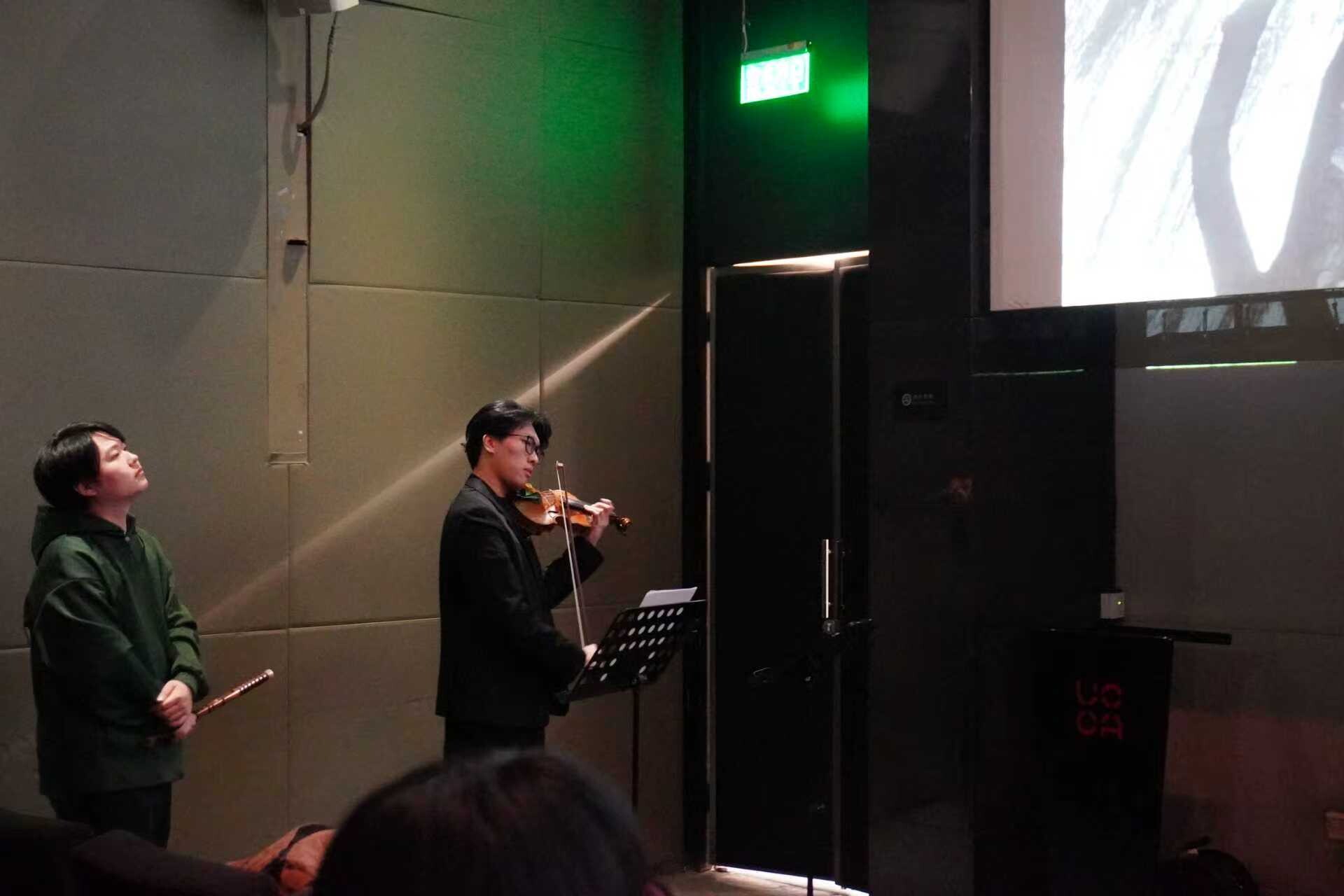 • 音乐现场演绎:笛子、小提琴演奏者周一鸣和易俊宇将在现场演奏金望为“香河”展览全新创作的音乐作品,两种乐器交织营造出富有空间感与情感层次的音景;