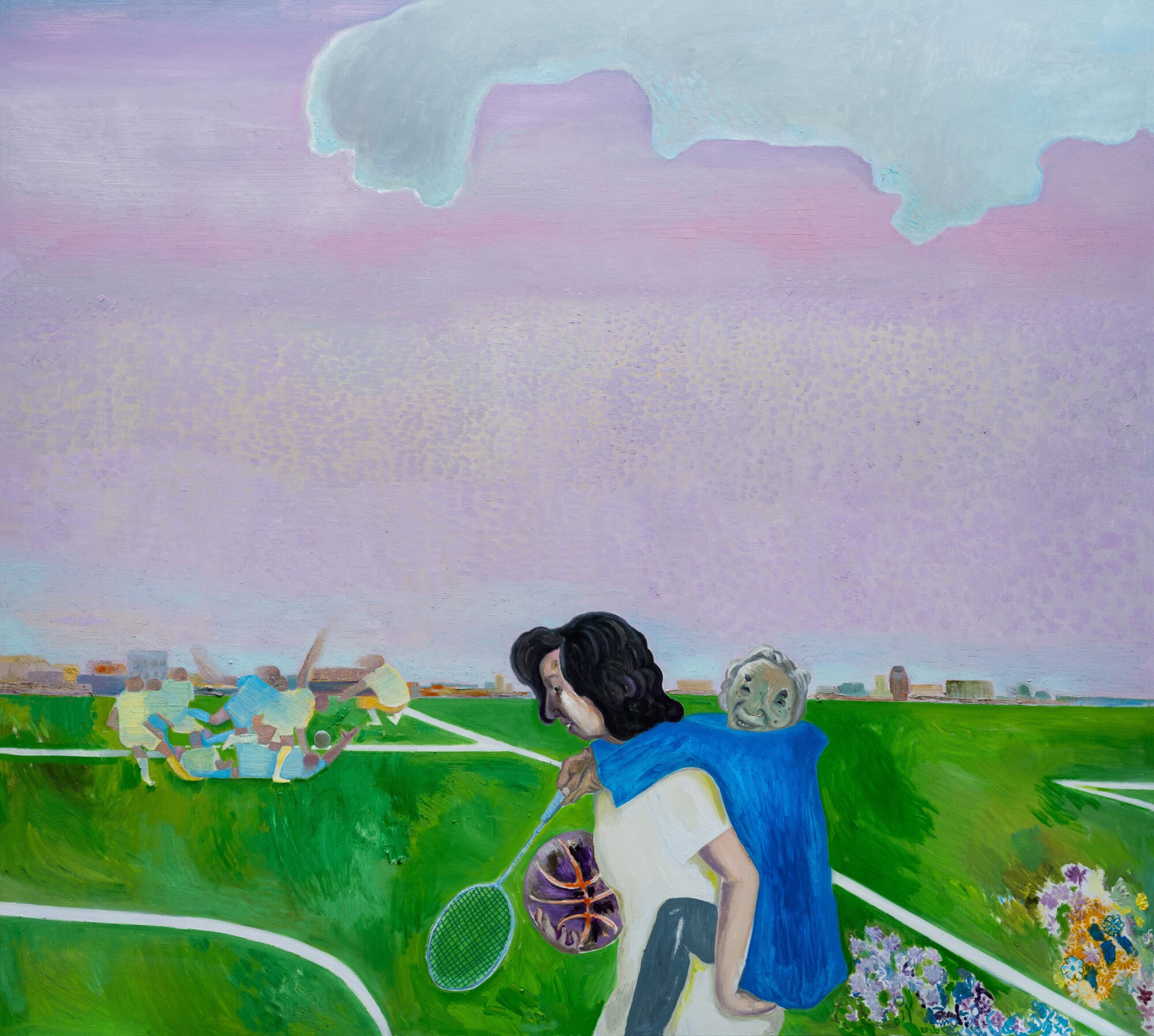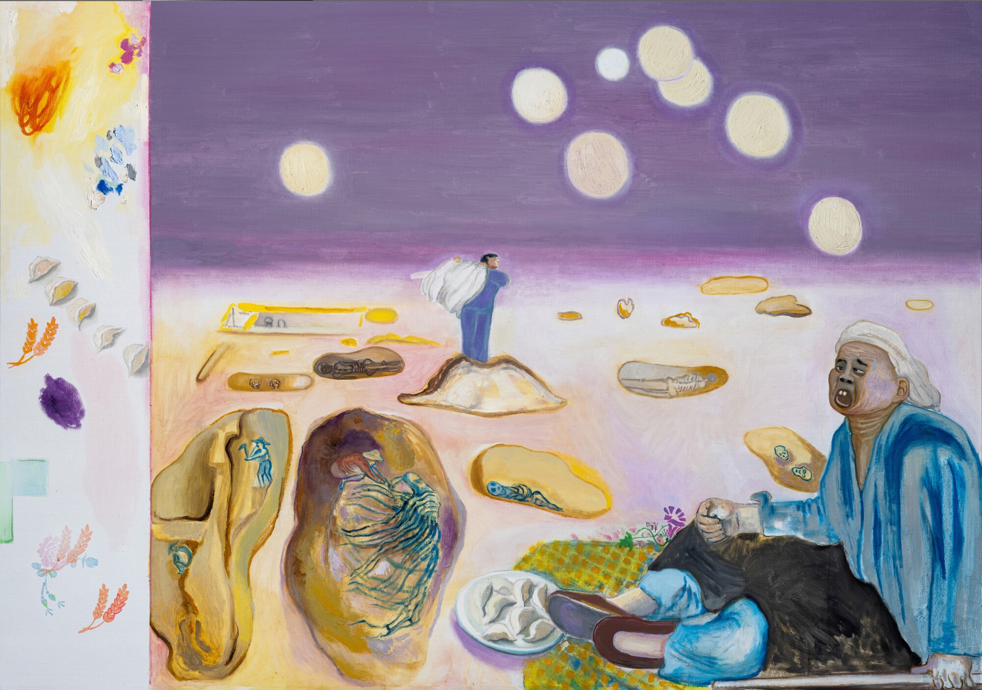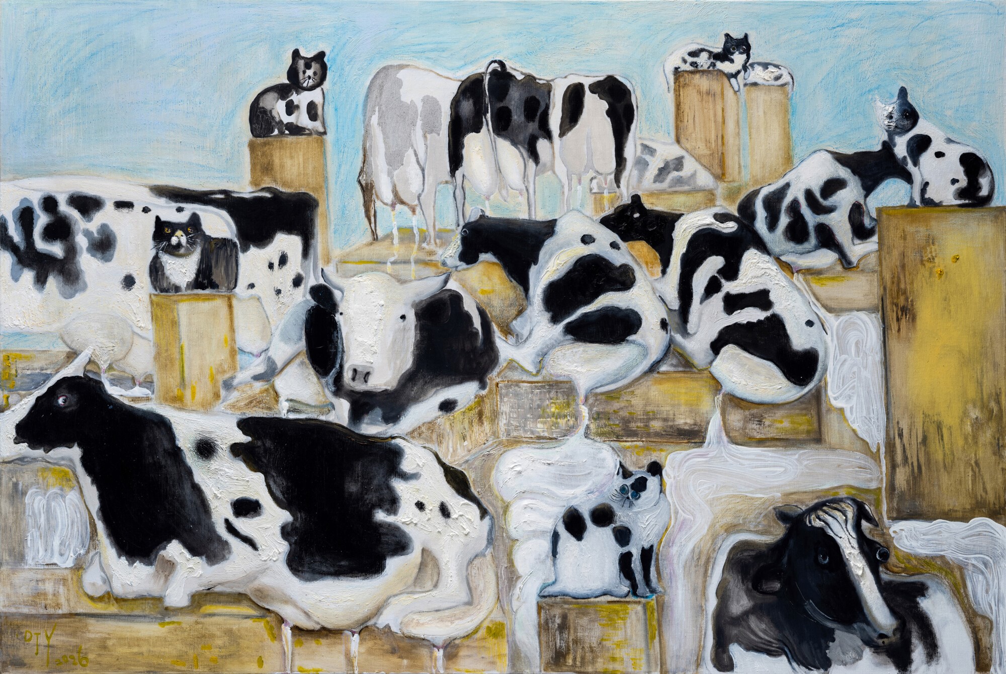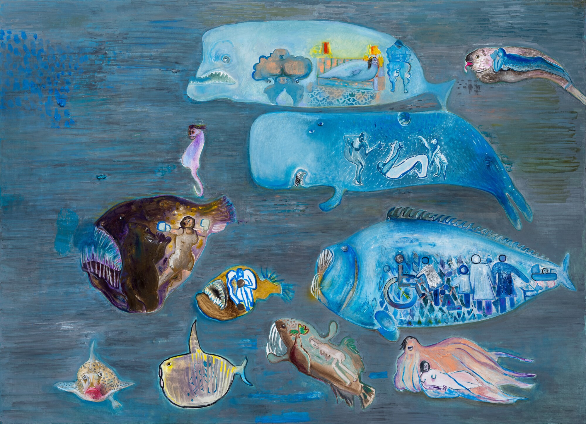 Oil, acrylic, oil-based marker, oil pastel, pencil on canvas