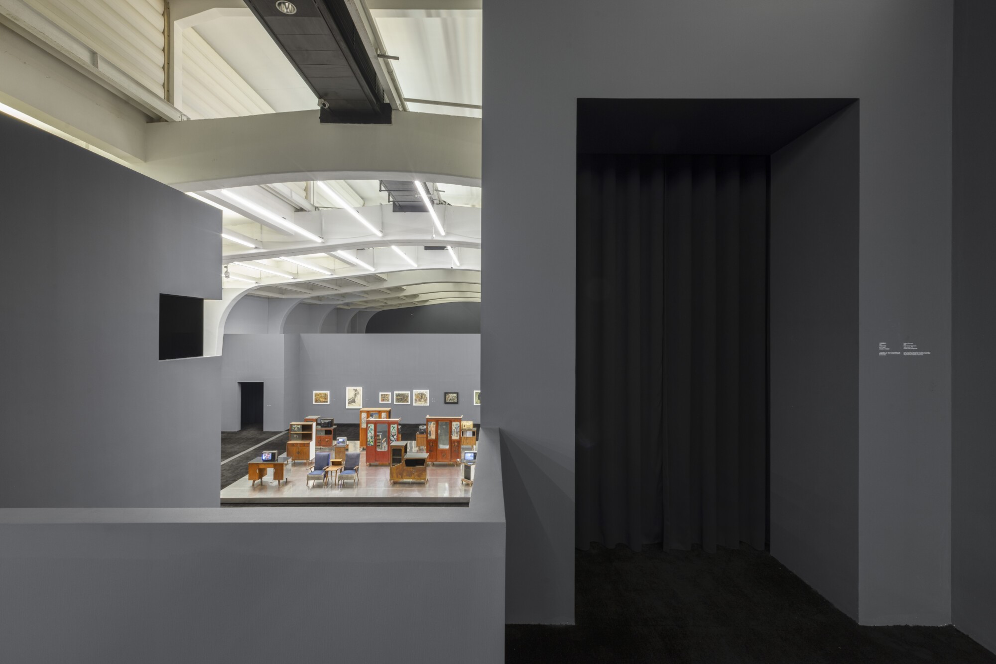 The exhibition architecture takes shape through symbolic spatial typologies—“maze,” “city tower,” and “square”—rendered in gradients of black, white, and layered greys, forming a setting that is at once structured and poetic. Rejecting a prescribed viewing route, Yang orchestrates a multi-directional spatial layout that encourages viewers to wander, double back, or even lose their sense of orientation, moving through a field with no fixed beginning or end. The use of light further intensifies this experience of temporal dislocation, aligning the narrative of the image with the narrative of space to suggest a form of sensory perception that is blurred and multi-dimensional. The exhibition design is led by UCCA Exhibition Designer Anna Yang.