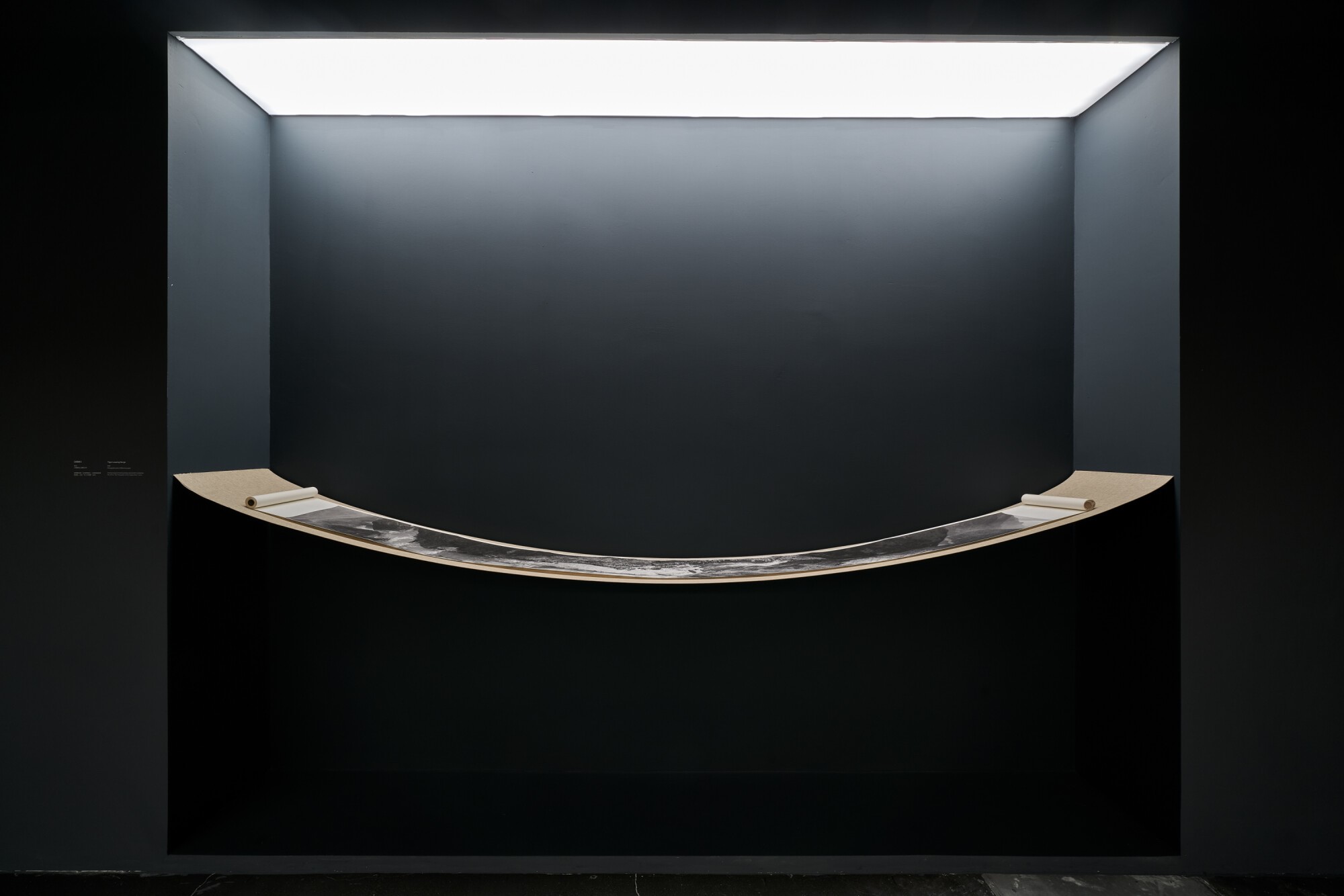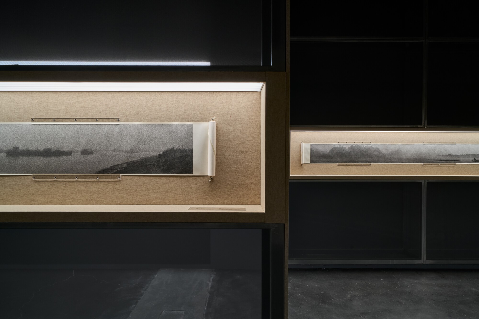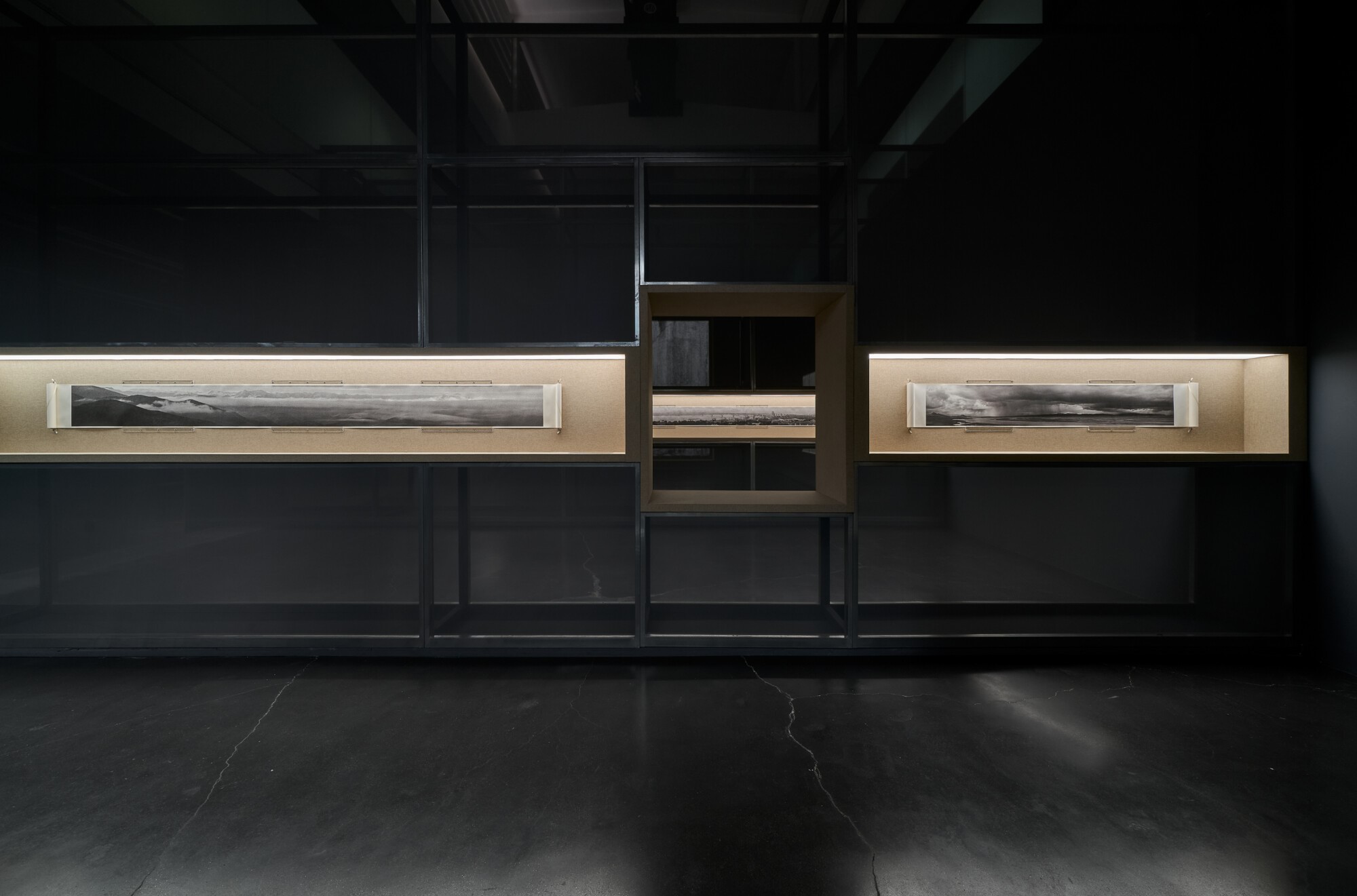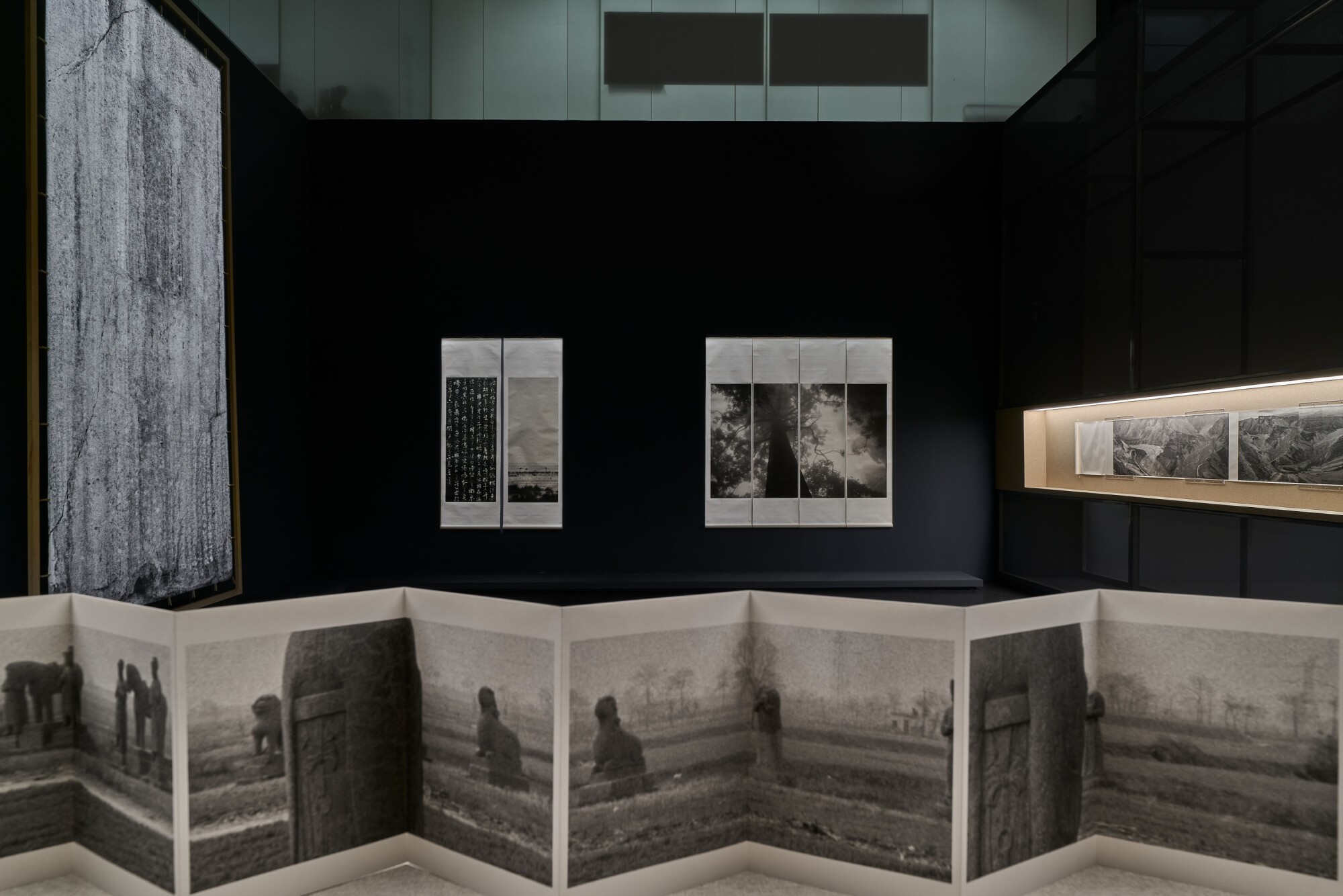 本次展览在展陈设计中引入半透明的灰色网纱作为主要空间元素,使作品在层层递进、若隐若现中徐徐展开。网纱柔软而通透的特性,与秋麦摄影作品的材质属性,以及中国传统绘画中常见的纸、绢等软性媒介形成呼应。展览空间结构则借鉴中国园林的“移步换景”,通过曲折的行进路径与错落的展墙关系,延缓和延展观看节奏和视角,在空间层面回应了秋麦作品所倡导的观看方式。