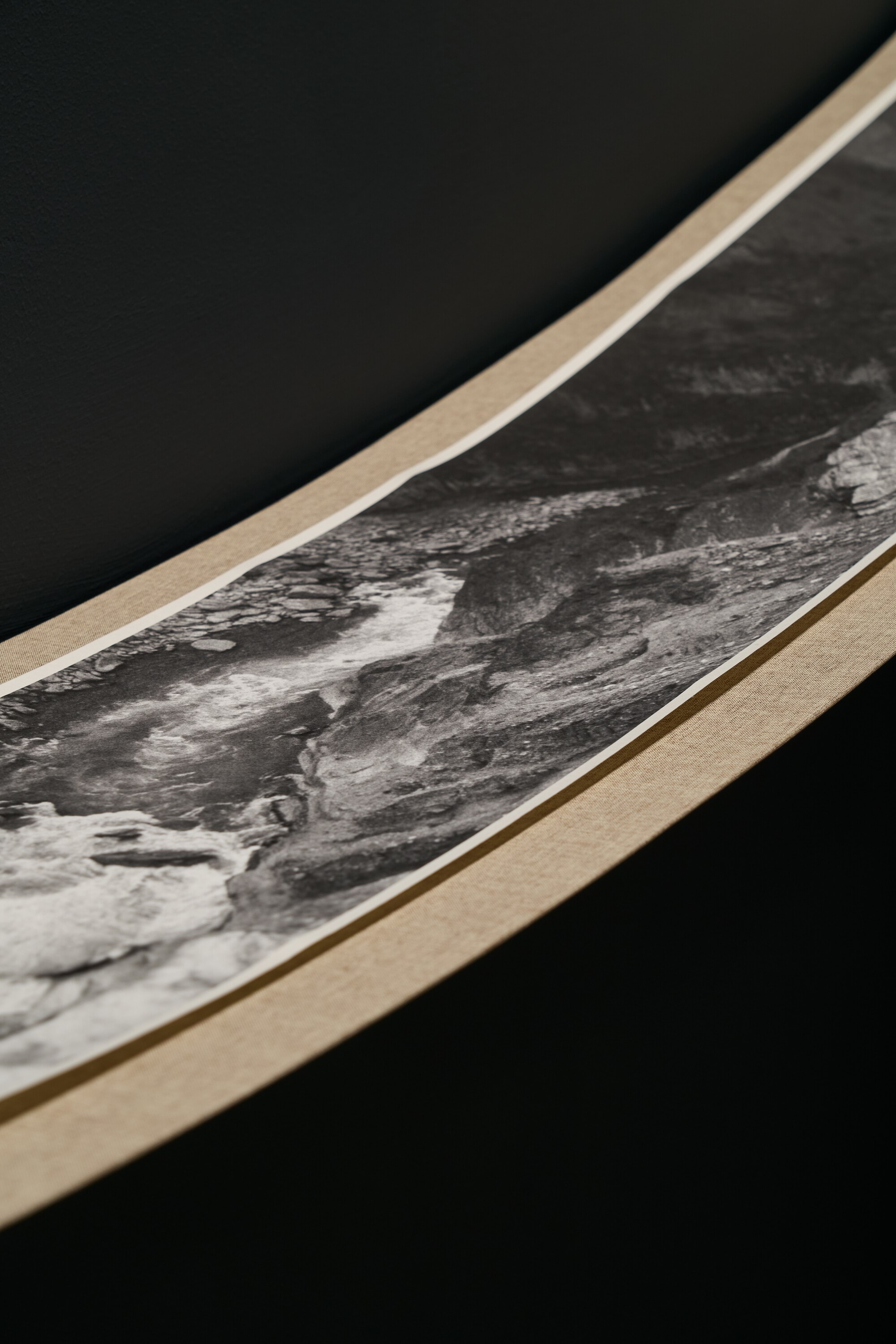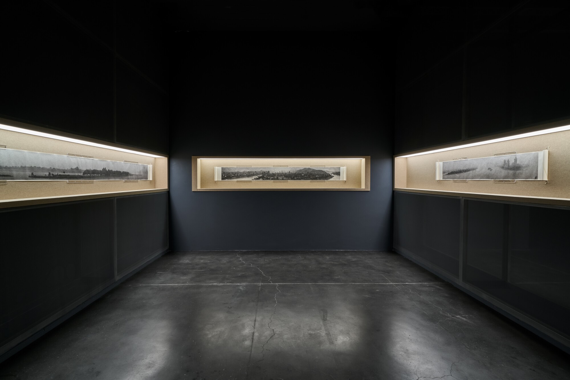 本次展览重点呈现秋麦沿长江两岸拍摄的“长江万里图”系列(2010-2015),该系列由42件手卷式摄影作品构成。展览首次大规模集中展出其中的12件,同时呈现艺术家于2016年创作的记录完整手卷的影像,以还原手卷的动态观看体验。秋麦在创作前主要参阅了收藏于美国华盛顿特区弗利尔美术馆宋代佚名艺术家创作的同名手卷,以其中所标示的地点为起点,借助卫星地图和坐标系统,在拍摄前对取景位置进行定位与行程规划。该系列贯穿长江从河源至入海、自西向东的漫长地理带,既有高山峡谷的急流断面,具有历史指涉的古城、石窟,也记录了工业与城市化浪潮下的地理变迁。